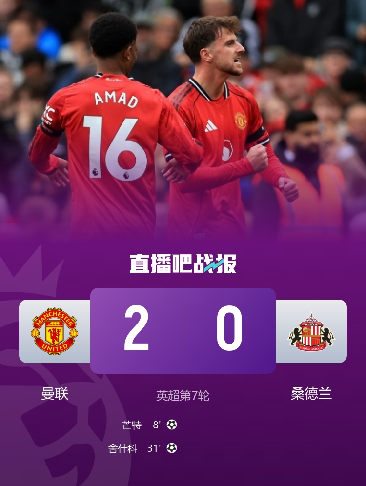 曼聯在下半場繼續控制局勢,思想清晰而穩健。盡管桑德蘭在最後階段加強了攻勢,試圖尋求反擊機會,但曼聯的防守足夠穩固,拉門斯表現出色,成功守住了零失球。最終,曼聯以2-0的比分穩穩收獲勝利,鞏固了在積分榜上的位置。