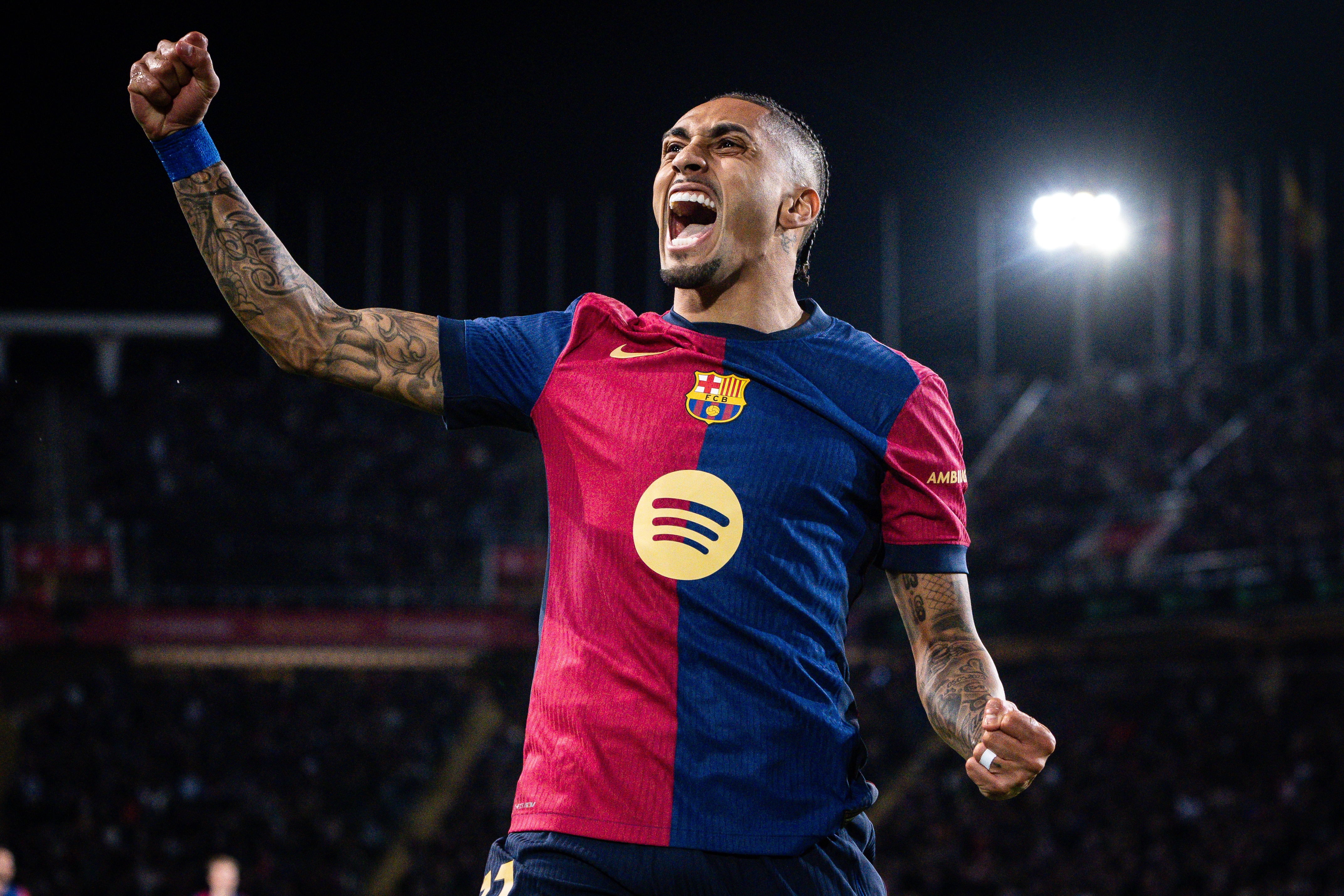 在2024-2025賽季的60場比賽中,拉菲尼亞出場57次,貢獻了34次進球或助攻,包括11場歐冠、19場西甲、3場國王杯和1場西班牙超級杯的比賽。他在關鍵時刻的表現尤為出色,尤其是在面對拜仁、本菲卡、多特蒙德(打入兩球)、國際米蘭(進三球)、皇馬(進三球)、西班牙人以及馬德裏競技等強隊的較量中都發揮了重要作用。上個賽季,他錄得34個進球和26次助攻,目前本賽季已交出3粒進球和2次助攻的成績單。